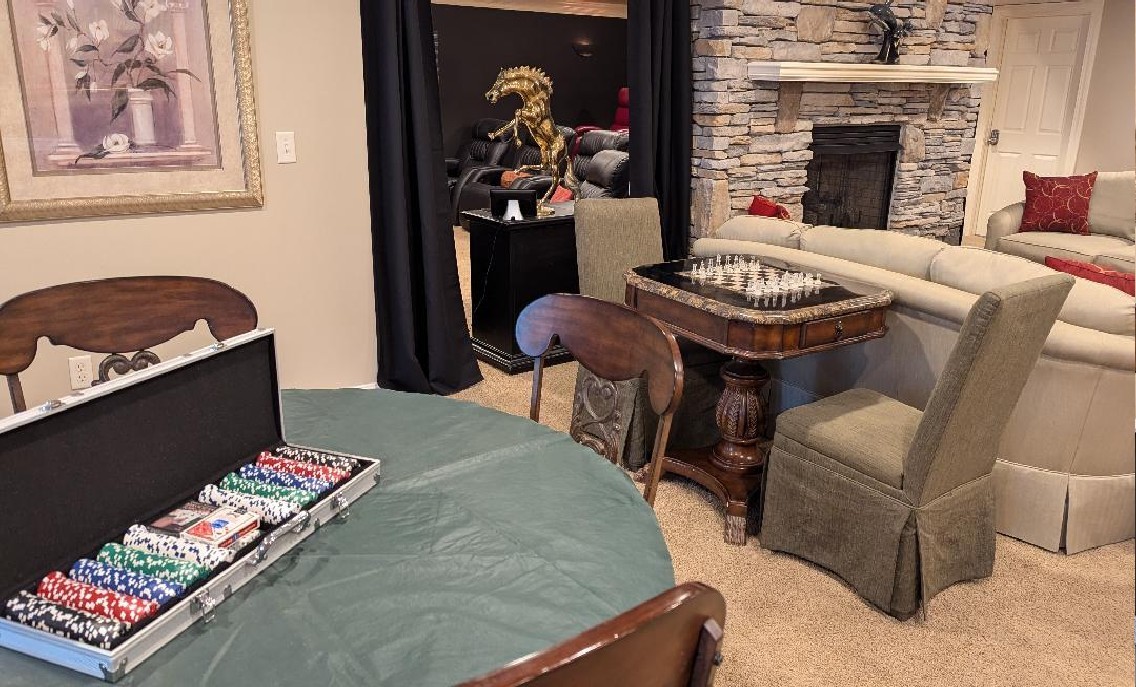 Large entertaining basement features a King Ensuite Bedroom, Livingroom with Bar, Theater Room (HD 130" screen), Exercise Room, Pool-Game Room, 2 full baths, 2nd laundry room...lots of space! Direct access to covered patio, outdoor kitchen, swimming pool and hot tub.
